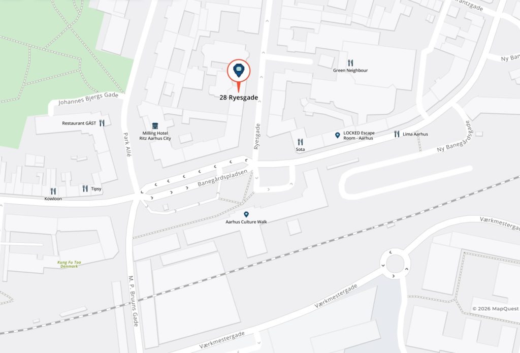 Adresse: Ryesgade 28, 1., 8000 Aarhus C (klik for kort)